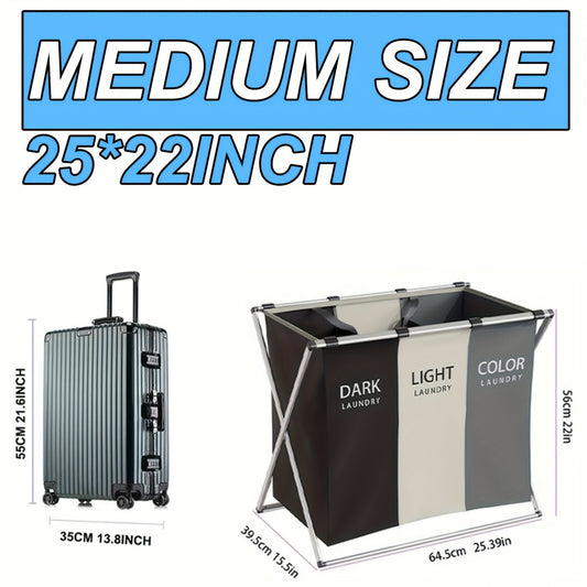 Office Sorting 3 Section Laundry Basket Printed Dark Light Color, Foldable Hamper/Sorter With Waterproof Oxford Bags And Aluminum Frame, Washing Clothes Storage For Home, Dormitary